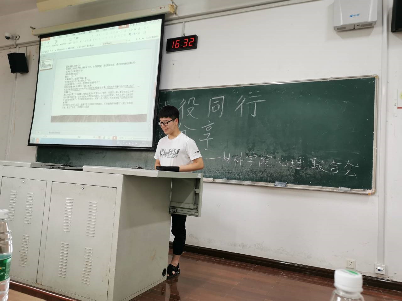 为缓解学生心理压力,帮助学生积极过好疫情下的“宅”生活,度过一个独特而精彩的学期,我院心理联合会于2020年6月20日,在w1210举办“宅生活-趣分享”活动,本次活动由心理联合会会长陈周义主持,部分材料院学生参与。 首先,陈周义就本次活动的目的及评选方式做了有关说明,鼓励参赛成员自信参赛、畅所欲言;接着,由心理联合会相关负责人李燚分发互评表,本次比赛采取不记名互评的方式,评出大家心中的最好宅生活;然后,参赛成员按抽签顺序依次分享自己的故事,由其余参赛人员打分;最后,由心理联合会甘文东总结发言,支持大家携手同心,共抗疫情,发现生活乐趣! 本次活动通过分享生活趣事,为同学在疫情下的宅生活提供了更多有趣的选择,营造一个愉快而积极的校园生活氛围!