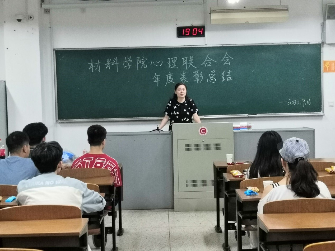 为加强材料学院心理建设、进一步深化心理工作常态,迎接2020年换届选举。材料学院心理联合会在2020年9月16日于辅楼W2109召开了年度总结表彰大会。此次大会由材料学院心理联合会宣传部部长王忠聿主持,材料学院心理专干王芳老师和心理联合会全体成员参加。 会议伊始,由王芳老师、会长陈周义和副会长刘珊对2019年心理协会的工作和举办的活动做了完整系统的总结,也对心理协会的未来发展做出要求与美好的展望。随后,由宣传部部长王忠聿对2019年获得优秀干部与干事心理联合会成员颁发奖状和奖品,这也是对他们在2019年心理联合会工作的最大肯定与期望。经过一学年的工作、活动以及王芳老师和正副会长的重重筛选,最后由王芳老师为入选材料学院心理联合会的2020级新部长们颁发聘书并合影留念。 此次大会是材料学院心理联合会对上一年度的总结,同时又是一个新的开始,也是对所以心理联合会成员最大的激励。通过此次会议,大大增强了部员们对心理联合会未来发展的信心,为材料学院心理工作迈上新台阶打下了坚实的基础!