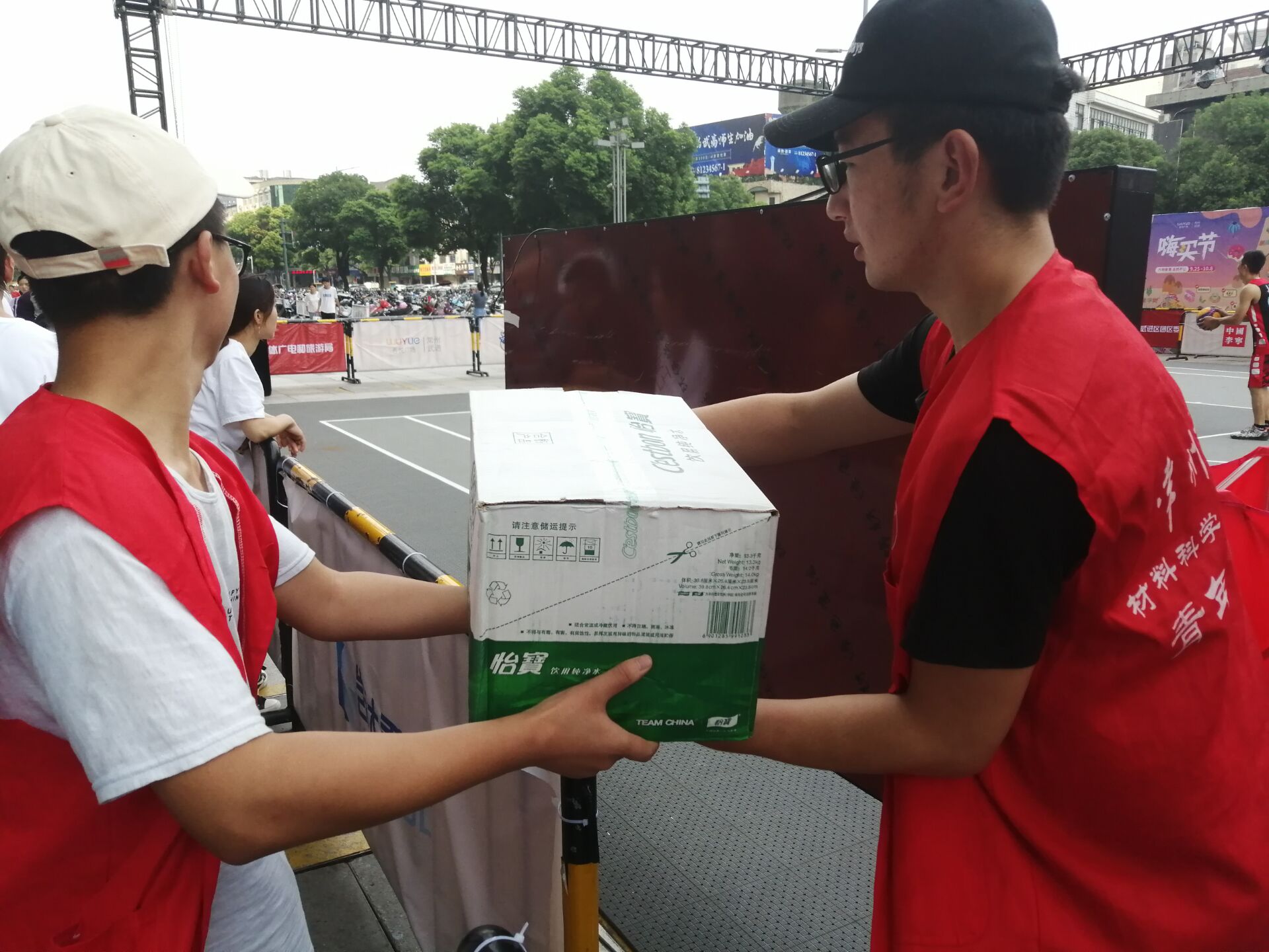 为了培养大学生奉献和服务社会的意识,增强志愿服务精神,同时为了丰富体育文化生活,增强全民的健身意识,我院志愿者团开展了协助武进区第一届吾悦杯三人篮球赛的志愿服务活动。 10月1号上午九点,在带队志愿者与主办方提前沟通的情况下,志愿者们准时来到武进区吾悦广场开展了志愿活动。志愿者们主要负责协助主办方做一些志愿服务活动,一些志愿者搬运记分大牌、矿泉水等,给篮球运动员们送上矿泉水,来平复刚打完篮球赛的疲惫的身躯。一些志愿者分成四组站在篮球赛场的四角,协助引导现场秩序。志愿者们分别在上午12点和下午三点进行了两次值班轮换。在结束活动之时,比赛的参与人员纷纷对志愿者们道声辛苦,主办方对也向材料院志愿者团的大力支持表示了感谢,参与活动的志愿者们也拍照记录了这次有意义的活动。 此次志愿活动完美结束,意义深远,既让志愿者们得到了锻炼,了解到志愿活动的深厚意义,也让我们以及广大的武进区市民了解到了健身的重要性,和感受到大学生的热情和关心。