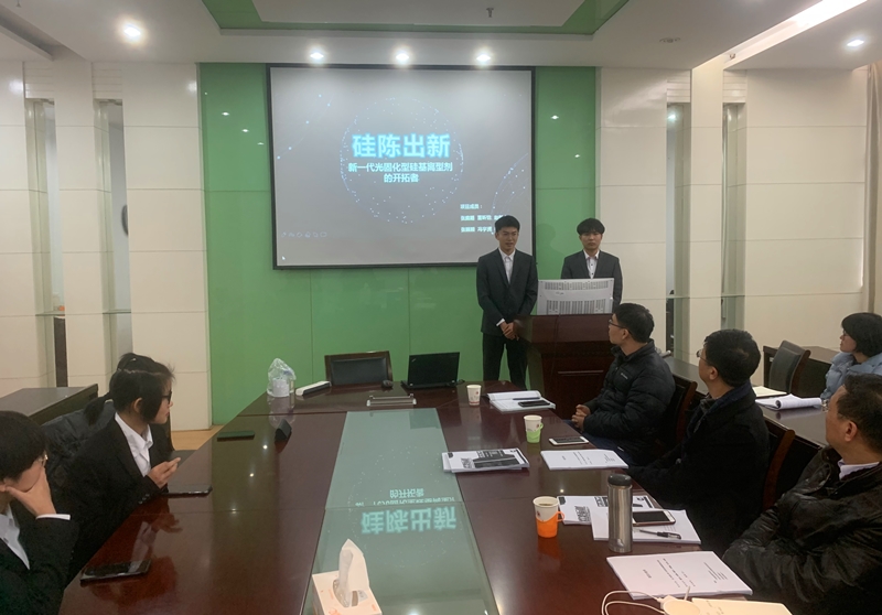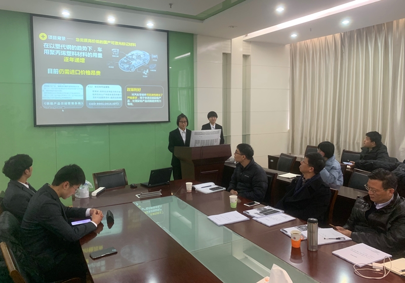 为了备战第十七届“挑战杯”全国大学生课外学术科技作品竞赛校内决赛,材料学院于1月6日下午在材料楼406会议室举行了第十七届“挑战杯”全国大学生课外学术科技作品竞赛院内评审会。高分子教研室李锦春教授、徐建平教授,材化教研室李坚教授作为评委出席了评审会。 “呼吸机用光诱导可回收生物基聚氨酯的制备关键技术”、“欧炬标才——国内领先可激光标记材料供应商”、“突破常硅——节能环保光固化硅基离型剂倡导者”三支入围校赛决赛的队伍依次上台进行了PPT讲解,三位指导老师予以了详细点评,他们肯定了每支队伍的独特创意,也着眼于不同角度,从不同层面上给予三支队伍宝贵的建议。让三支队伍都认识到自身的创新点和不足之处,能将更好的姿态呈现在校决赛的舞台上。