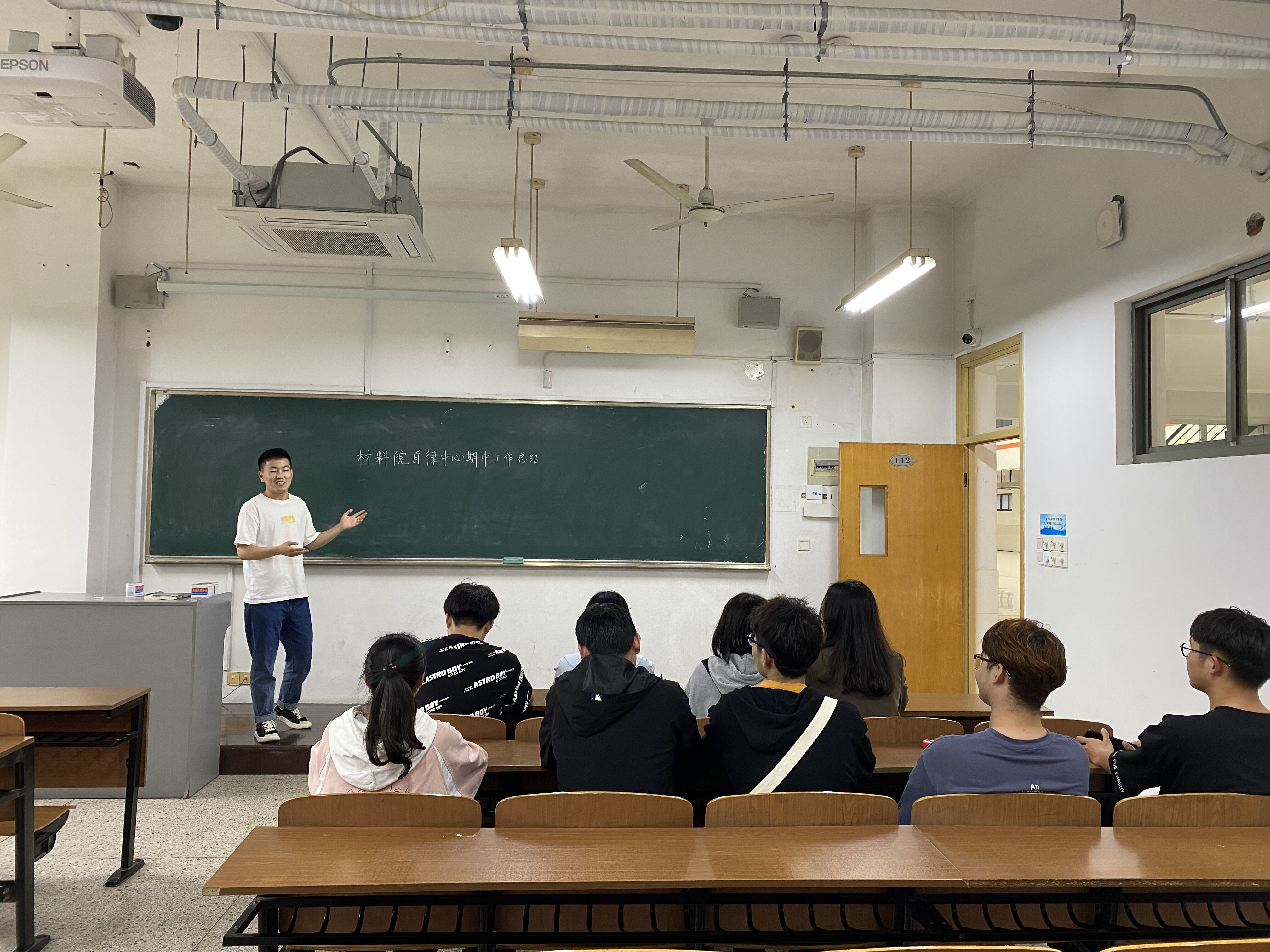 为加强完善学院学风建设,总结自律中心前期工作、部署下班学期学风工作。材料学院自律中心于4月27日晚在w2112召开了院自律中心期中工作总结会议,本次会议由院自律中心主任冯俊震主持,院自律相关专业负责人及部长全程参与。 本次会议分为两个部分。第一部分,冯俊震就现阶段自律中心的工作及存在的问题进行总结,对前期的读书笔记大赛工作进行讨论和反思。第二部分,针对下一阶段的优秀学子集和寝室门牌大赛,对各部门部署任务,以更好的状态迎接接下来工作。 通过此次大会,大家认识到了在以往工作中的不足并积极改进,向着创办具有自身特色的自律中心这一目标迈进。