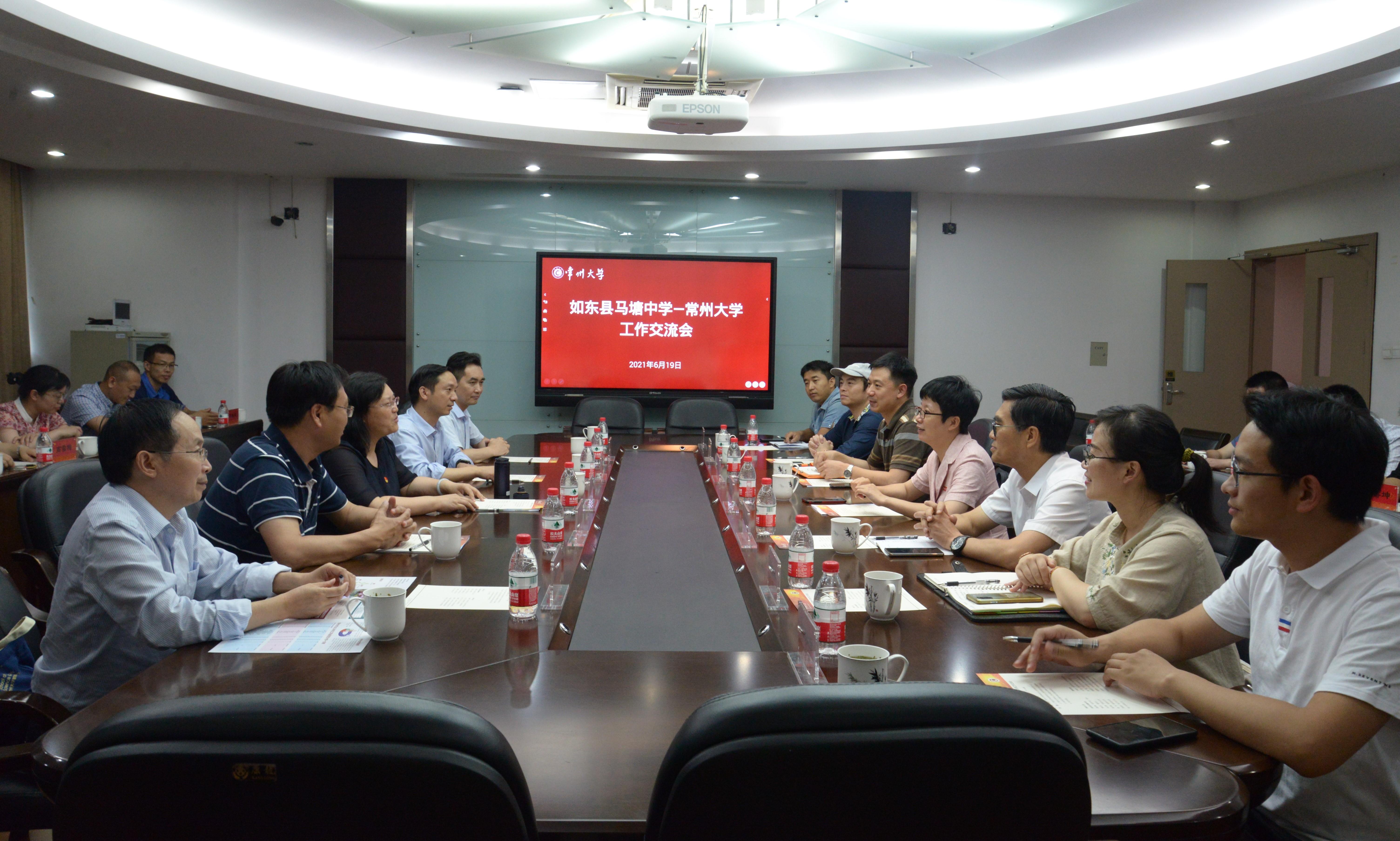 6月19日下午,如东县马塘中学党委书记、校长葛家梅,副校长曹成双一行到访我校交流,学生工作处副处长薛峰,材料学院院长朱卫国、党委副书记程晓军以及我校负责如东片区招生宣传工作的部分教师参加了交流会,会议由材料学院党委书记吕琳华主持。 朱卫国向参会人员详细介绍了常州大学以及材料学院的基本情况、学科建设、教学和科研成果等。薛峰介绍了学校各专业的概况,着重讲解了新高考方案下新生入学的相关政策。最后,葛家梅发言介绍了马塘中学本届高三毕业班的总体情况,对我校长期以来对于录取的马塘学子的关心和教育表达了由衷感谢,同时希望两校在学业生涯指导、党建教育等方面进一步开展合作。 会后,葛家梅一行还参观了我校红色文化主题教育馆。
