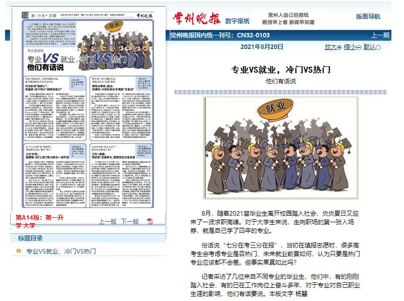 日前,《常州晚报》采访了我院第一届博士毕业研究生叶枫,通过对其访问,了解了专业对其职业生涯的影响。8月20日的《常州晚报》及常州新闻发布了采访内容。 《常州晚报》报道链接:http://epaper.cz001.com.cn/site1/czwb/html/2021-08/20/content_414320.htm 常州新闻报道链接:https://cznews2021.cz001.com.cn/index.php?c=Wap&m=detail&id=62477