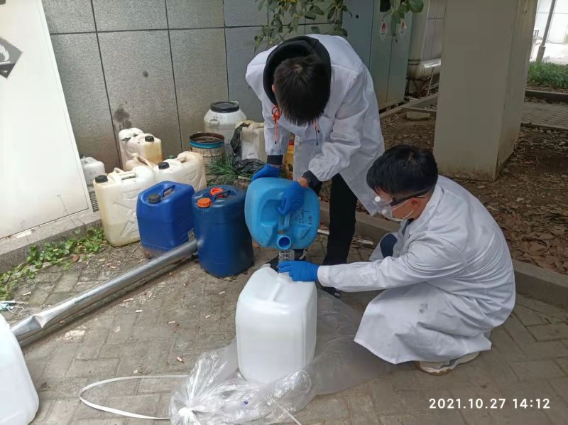 10月24日南航材料实验室发生爆燃,引发火情。如此惨痛的教训为我们敲响了警钟,为保障材料学院全体师生的人身安全,学院开展了危化品存储和危废处置安全专项整治行动。材料楼下垃圾桶旁边堆放了数桶废弃的液压油、硅油等,无专人负责清理,堆放时间长,带来极大的安全隐患。 为彻底清除安全隐患,保障师生安全实验环境,学院领导班子认真讨论,制定了科学合理的处置方案。10月27日下午,学院曹峥老师与江苏省环境资源公司危废回收专业人员联合对堆积时间较长的桶装液压油、硅油等废弃液体开展清理回收工作,按照国家与江苏省危险废物处置要求进行危废液的科学与安全处置。在双方的不懈努力下,耗时三个多小时终于将废弃油污转移到专门的回收桶内并由江苏省环境资源公司运输处置。 实验室的安全需要全体师生共同维护,今后要求师生严格遵守实验室的规章制度,对废弃的化学药品以及油制品按照正规危废处置要求处理,不要随意丢弃、堆放。希望全体师生共同努力,营造安全整洁的实验室环境。