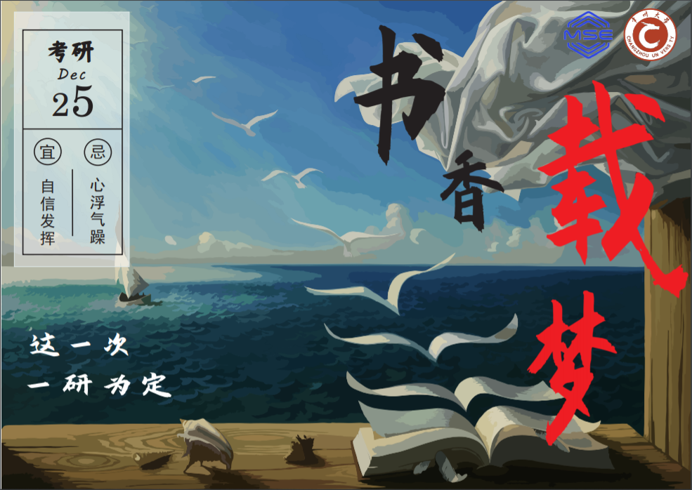 对于既定的目标笃定前行,对于已选的道路望穿秋水,对于所做的决定至死不渝。那年那月那个孤独的考研人,那山那水那条寂寞的考研路,那日那夜那颗执着的考研心,那风那雨那个执着的考研梦。 为能让同学们有机会对考研的学长学姐诵以无声的呐喊,为鼓励考研的各位学长学姐在考研大军中突出重围,11月12日常州大学材料学院心理联合会举办关以“考研加油”为主题的海报设计大赛。 此次活动一共收到14份优秀作品,这些优秀作品有:以漫长的公路上独自跑步为题进行设计,说明考研不是一蹴而就的事情,需要长期的坚持与沉淀,忍受单军作战的枯燥与孤寂。以油画窗外海景为背景,用日历.文字.海鸥等元素展现了以书载梦飘上远方,追逐梦想的主题,同时运用谐音“这次一研为定”希冀学长学姐们实现考上心仪的大学的梦想。以平时学习的桌子上放着一碗拉面,同时一手拿录取通知书,一手用筷子夹着超长的拉面,意在助力考研,用拉面增加趣味性“超常发挥”,祝愿学长学姐们可以在考场上超常发挥。经过多轮的评比,最终选出了9份优秀作品并给予了肯定。 通过此次活动,提高了同学们想象力的散发,也提前了解到考研这块“黑巧”,并提前规划下以后是否决定考研,相信各位同学对于考研会有更为清晰的认识。最后,感谢各一位参赛选手精心准备的作品为学长学姐“助威,打气”,这些作品都包含了对学长学姐最真挚的祝愿,“大鹏一日同风起,扶摇直上九万里”,“长风破浪会有时,直挂云帆济沧海”。最后的最后,祝愿各位学姐学长们在考研大军中提笔定乾坤!
