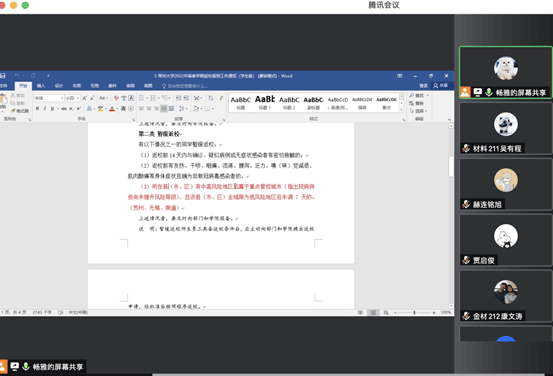 为切实做好新学期开学疫情防控工作,确保疫情期间学生安全返校, 2月18日,金材专业召开返校安排线上学生骨干会议,会议由辅导员畅雅主持,金材专业各班班长参加。 会上,畅雅传达了《常州大学2022年春季学期返校报到工作通知》要求,对返校条件中的暂不返校、暂缓返校、正常返校三类情况进行了详细解读,对返校流程做了重点强调。她要求全体同学严格按照疫情防控要求,做好每日健康打卡和监测体温工作,自觉遵守学校管理规定,提高风险意识,加强个人防护,做好自身健康第一责任人。 此次会议为迎接学生顺利返校奠定了基础,积极营造了常态化疫情防控良好氛围。