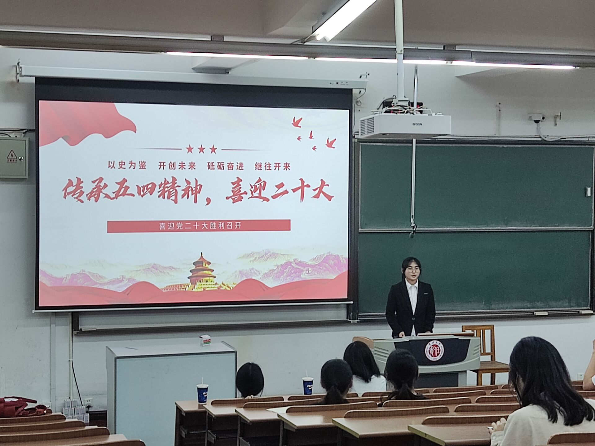 2022年4月12日,材料学院团委在W9阶开展了全省团干部思政技能大比武团支部书记专项赛校赛的院内选拔,共有五名团支书及团学干部参加选拔,院团委书记蔡震宇、高分子专业辅导员何超、材化专业辅导员李若洁和院团委副书记董昕怡担任评委。比赛过程严格按照学校疫情防控要求,大家佩戴口罩、间隔入座。 参赛同学围绕“喜迎二十大”主题,进行了丰富的团课讲解,选手们或讲述了作为当代青年应担起的历史重任,要学习、弘扬五四精神;或强调作为新青年,要承担新一代的责任,为中华民族伟大复兴贡献力量;或引导团员青年不忘初心、牢记使命,为国家奉献青春力量;或通过介绍党的百年奋斗重大历史成就和历史经验,达到引领学风的目的。 最后,经过评委现场打分并结合选手的主题团日策划书得分,材化212唐心怡、高分子201蒋陈晶分别获得一二名并代表学院参加团支部书记专项赛的校赛。