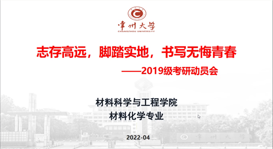 | 志存高远,脚踏实地,书写无悔青春 ——材料化学2019级考研动员大会 |