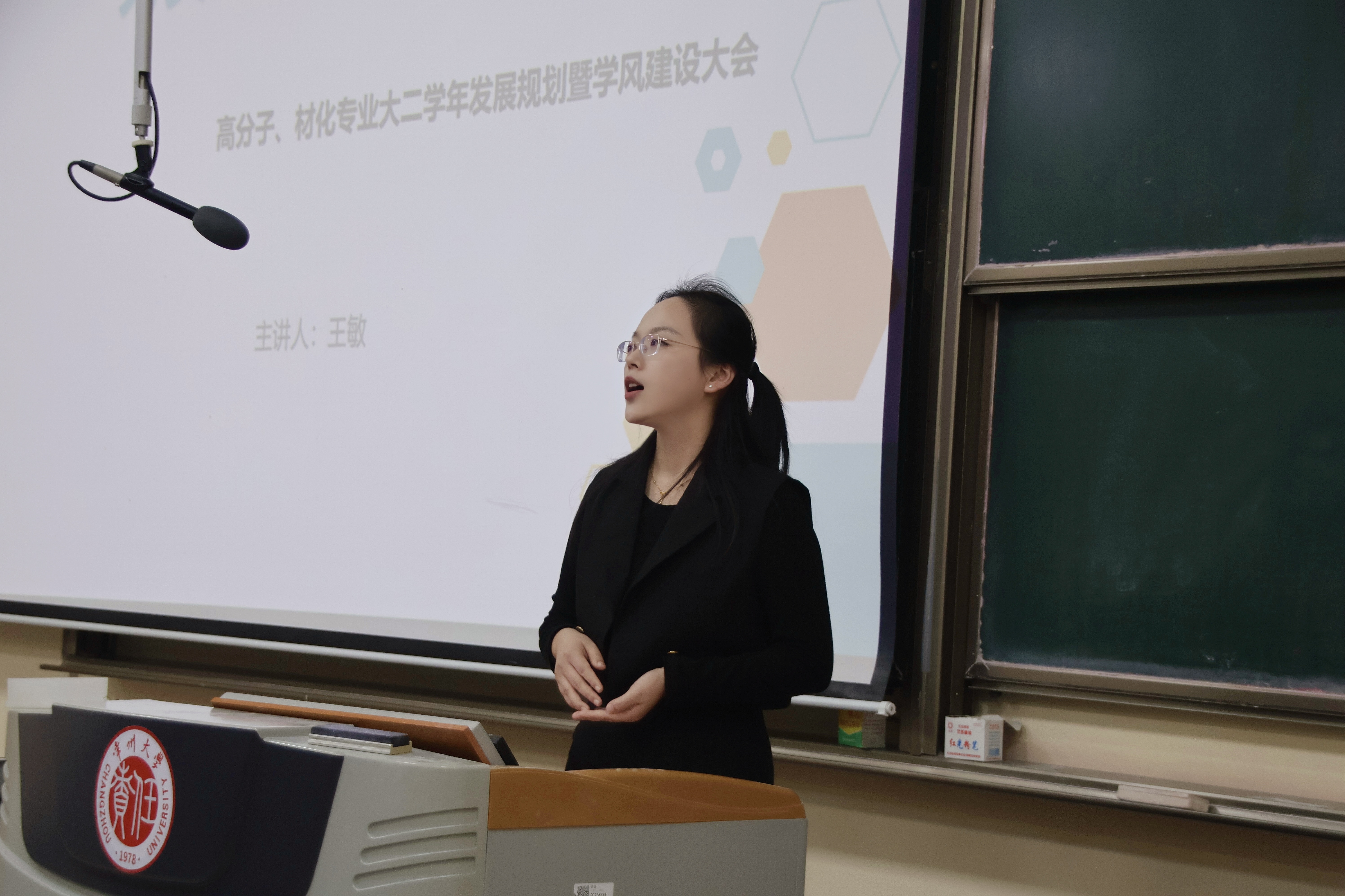为明确学业目标、规划大学生涯,提升学生学习动力与专业认同感,11月5日下午,材料学院高分子、材化专业于W5阶召开本学期年级大会。本次大会由辅导员王敏主持,围绕专业发展、学业分析、能力提升、安全防范等核心内容展开。 大会伊始,王敏结合行业趋势解析新材料领域就业前景,指出随着新能源、半导体等产业快速发展,新材料已成为热门赛道,相关岗位需求旺盛。她鼓励学生夯实专业基础,主动拓展跨学科视野,提升就业核心竞争力。随后,她对上一学年的学业表现进行简要分析,提醒学生重视挂科风险,分享了科学的学习方法与时间管理技巧,助力学生养成良好学习习惯。 在能力提升方面,王敏介绍了本科生导师制的沟通要点,鼓励学生主动与导师沟通科研方向,积极参与科创活动、竞赛及志愿项目,以实践提升综合素质。安全防范环节中,她结合典型案例,提醒学生警惕网络诈骗,注意交通、住宿及实验安全,强调遵守规章制度的重要性。 会议最后,王敏倡导学生珍惜父母与老师的付出,将感恩融入日常。她呼吁学生在大二学年明确目标、稳步前行,力争降低挂科率、积极参与各类实践活动。本次大会为学生厘清了发展方向、提供了成长指引,学生们纷纷表示将以更坚定的行动逐梦韶华。 为帮助同学们明确学习方向、破解保研困惑,本次年级大会还特别邀请到学校获批保研资格后,首批保研成功至东华大学的优秀学姐高分子223上官蕾与大家分享学习经验。上官蕾从 “专业学习方法”“科研实践积累”“保研流程拆解”“心态调整技巧” 等方面展开,结合自身从基础积累到冲刺保研的完整历程,毫无保留地分享了独家经验,并为同学们更好地谋划大学生活明晰了思路。 一审/王敏 二审/汪称宇 三审/程晓军