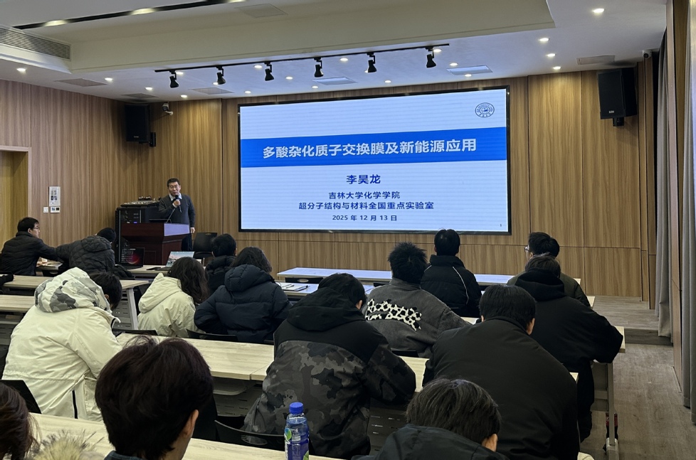 2025年12月15日,吉林大学李昊龙教授应邀访问常州大学材料科学与工程学院,并为师生作题为“多酸杂化质子交换膜及新能源应用”的学术报告。报告在材料学院一楼报告厅举行,由学院副院长林本才教授主持,全院师生踊跃参加。 质子交换膜是新能源技术领域的关键材料,对我国实现“双碳”战略目标具有重要意义。目前,以Nafion膜为代表的全氟磺酸膜因其优异的质子电导率和化学稳定性,已成为应用最广泛的商用质子交换膜。然而,Nafion膜的离子相区尺寸约为3~5 nm,远大于氢气分子、钒离子等活性组分的尺寸,在实际应用中易发生渗氢、透钒等问题,制约了相关产业的发展。 针对上述挑战,李昊龙教授在报告中系统介绍了其课题组近年来的研究成果。团队选用尺寸仅约1 nm的多酸团簇作为质子传导基元,发展了一种将该类团簇精准修饰到Nafion离子相区的杂化改性方法。该方法在提升Nafion膜质子传导能力的同时,利用多酸团簇的空间位阻效应显著增强了膜的阻隔性能,从而创制出一系列高选择性质子交换膜。这些膜材料在燃料电池、电解水制氢、全钒液流电池等多个新能源领域均表现出优异性能。报告还详细阐述了该类杂化质子交换膜的制备方法、结构调控策略及其在新能源技术中的应用前景。 报告结束后,李昊龙教授与现场师生进行了亲切交流,并就多酸团簇的应用场景、未来市场价值等议题展开了深入讨论。本次报告内容翔实、视角前沿,不仅拓宽了师生在质子交换膜领域的科研视野,也对促进学科发展与产学研合作具有积极意义。
